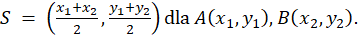 Wyznaczamy współrzędne środka odcinka.