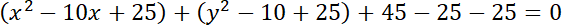 Zacznij od zapisania równania okręgu w postaci kanonicznej. Odczytaj, że środek okręgu znajduje się w punkcie S(5, 5), a długość promienia to
