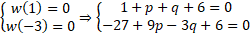 Oblicz wartość parametru p i q podstawiając za niewiadomą x 1 i -3 równocześnie przyrównując wielomian do zera. Po obliczeniu parametrów należy podzielić wielomian