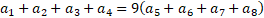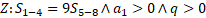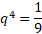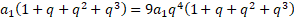 Zapisujemy sumę czterech początkowych wyrazów malejącego postępu geometrycznego oraz sumę kolejnych czterech wyrazów. Wyznaczamy z poniższego równania iloraz tego ciągu: