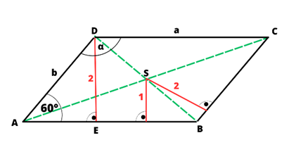 . Oblicz długości boków a i b oraz pole równoległoboku.
