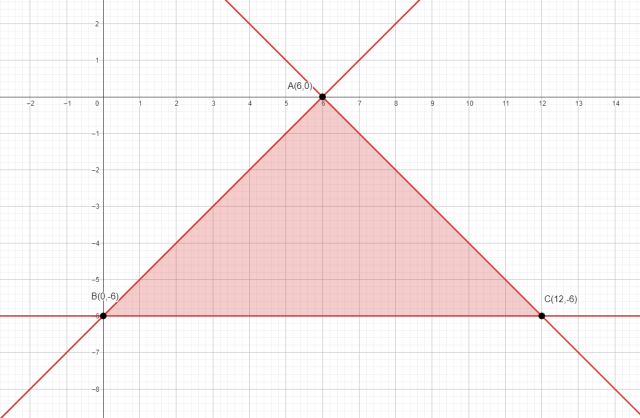 Przekształć nierówności wchodzące w skład układu. Stwórz szkic, czyli część wspólną półpłaszczyzn wyznaczanych przez składowe nierówności i wyznacz współrzędne wierzchołków powstałej figury. Odczytaj lub oblicz długości boków potrzebnych do obliczenia pola figury.