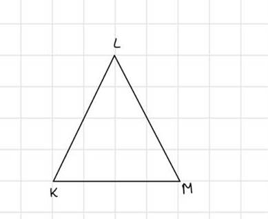 Zaznacz dowolne punkty K i L, następnie dorysuj punkt M, tak aby odcinek KL był ramieniem i dwa boki były tej samej długości.