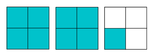 kolorem zamaluj dwa całe kwadraty i jedną część z trzeciego