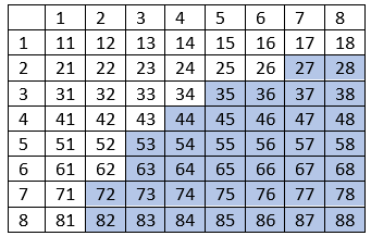 W tym zadaniu musisz oblicz, ile jest liczb dwucyfrowych utworzonych z cyfr {1, 2, 3, 4, 5, 6, 7, 8} i których iloczyn jest większy od 12.