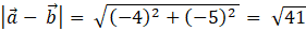 By obliczyć długość wektora a - b na początku oblicz jego współrzędne (odejmij parami odpowiednie współrzędne danych wektorów). Kolejno, korzystając ze wzoru na długość wektora