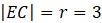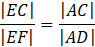 W rozwiązaniu skorzystaj z podobieństwa trójkątów EFC i ADC wynikającego z cechy kąt – kąt – kąt. Zapisz równość stosunków odpowiednich boków trójkątów. Odcinek |EF| jest promieniem okręgu, więc jego długość jest równa 3. Długości odcinków AC i AD została wyznaczona w podpunkcie a).