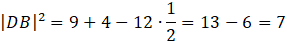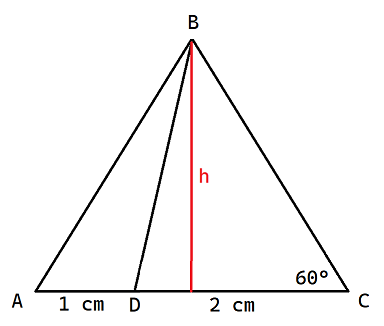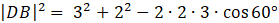 Znając długości boków DC i BC orz kąt między bokami trójkąta równobocznego, długość boku |BD| oblicz wykorzystując twierdzenie cosinusów.