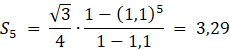 W tym zadaniu należy obliczyć sumę pól pierwszych pięciu trójkątów.