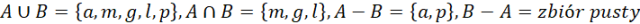 W tym zadaniu należy wykonać podane działania na zbiorach.