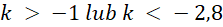 K > -1 lub k < -2,8