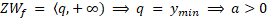 Ze zbioru wartości (ZWf) odczytujemy, że q (będący drugą współrzędną wierzchołka) jest wartością najmniejszą funkcji f, czyli ramiona paraboli są skierowane w górę, więc współczynnik a jest dodatni.