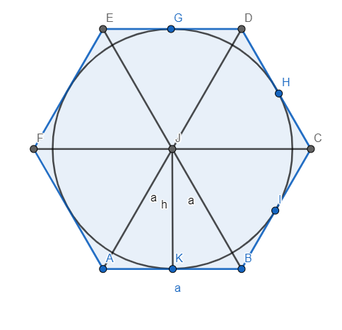Zauważ, że promień okręgu wpisanego w sześciokąt foremny jest równy wysokości trójkąta równobocznego o boku a. Zapisz długość okręgu oraz obwód sześciokąta. Następnie skorzystaj z informacji, że obwód sześciokąta jest o