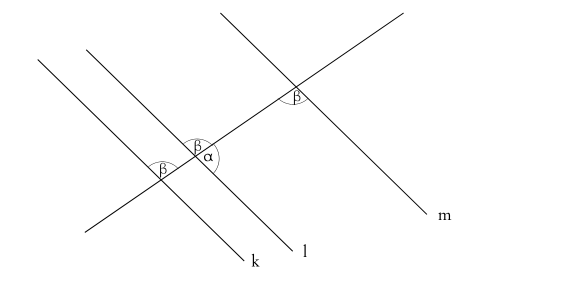 Zauważ, że jeżeli dwie proste równoległe przetniemy trzecią, utworzone