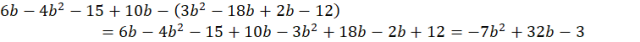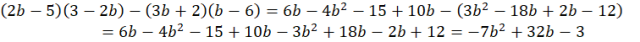 W tym zadaniu przedstaw wyrażenie (2b - 5)(3 - 2b) - (3b + 2)(b − 6) jak najprościej.