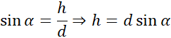 Sinusem kąta α nazywamy stosunek długości przyprostokątnej leżącej naprzeciw kąta α do długości przeciwprostokątnej.