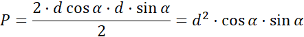 W tym zadaniu, korzystając z funkcji trygonometrycznych, zapisz wzór pozwalający obliczać pole trójkąta równoramiennego, gdy dana jest długość ramienia d wiedząc, że kąt między ramieniem a podstawą tego trójkąta ma miarę α.