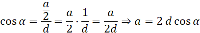 Cosinusem kąta α nazywamy stosunek długości przyprostokątnej leżącej przy kącie α do długości przeciwprostokątnej.