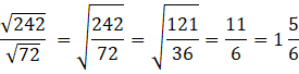 Iloraz pierwiastków, jest równy pierwiastkowi ilorazu. Należy skrócić dany ułamek i znaleźć liczbę, która podniesiona do kwadratu da dany wynik.