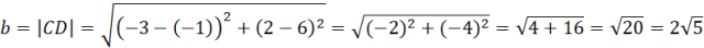 Niech E oznacza spodek wysokości opuszczonej z wierzchołka D na odcinek AB, wtedy z twierdzenia Pitagorasa:
