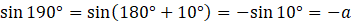 Wiedząc, że a = sin 10°, używając a, określ liczbę sin 190°.