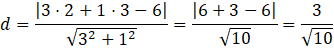 Wykorzystaj wzór na obliczenie odległości pomiędzy prostą a punktem, aby obliczyć odległość punktu S od cięciwy: