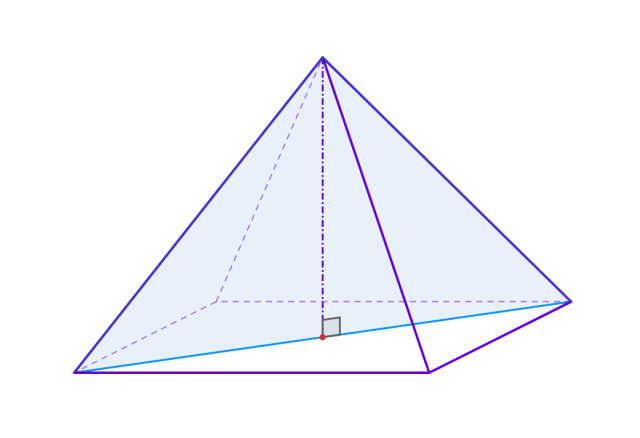 Naszkicuj przekrój ostrosłupa prawidłowego czworokątnego płaszczyzną, która zawiera krawędź boczną i wysokość ostrosłupa.