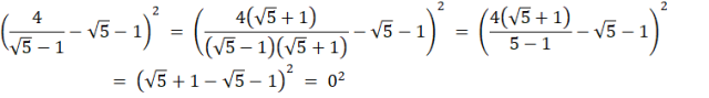 W pierwszej kolejności usuń niewymierność z mianownika ułamka, mnożąc górę i dół przez sprzężenie mianownika. Następnie oblicz wartość wyrażenia w nawiasie i podnieś je do 2. potęgi.
