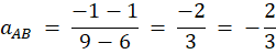 Wyznaczamy współczynnik kierunkowy prostej zawierającej odcinek AB.