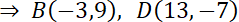11. Ponieważ w punkcie D otrzymujesz to samo rozwiązanie co w punkcie B, otrzymujesz: B(-3, 9) i D(13, -7).