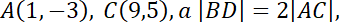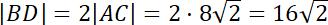 2. Oblicz długość odcinka |BD|, gdzie |BD| = 2|AC|: