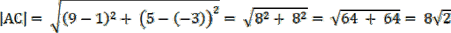 8. Oblicz długość odcinka |BS|, gdzie S jest środkiem odcinka AC:
