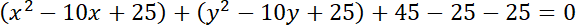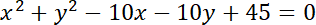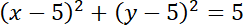 Zacznij od zapisania równania okręgu w postaci kanonicznej. Odczytaj, że środek okręgu znajduje się w punkcie S(5, 5), a długość promienia to