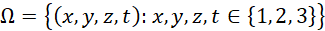 Pojedynczym zdarzeniem będzie pewna czwórka elementów (x, y, z, t), gdzie każdy z nich przyjmuje losową wartość ze zbioru {1, 2, 3}, a ich wartości mogą się powtarzać.