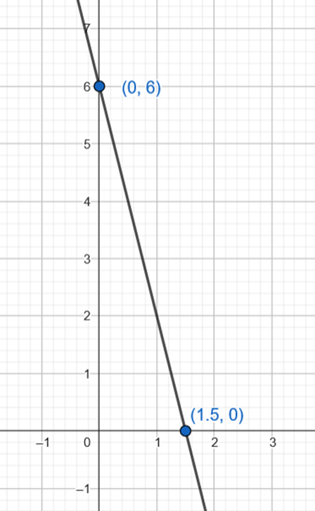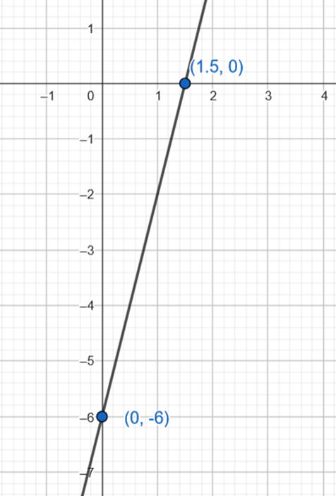 Zauważ, że wykres szukanej prostej i osie układu współrzędnych tworzy trójkąt prostokątny. Skoro do wykresu szukanej funkcji należy punkt