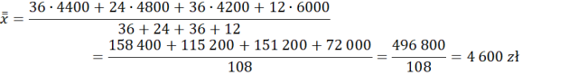 Następnie skorzystaj z tego, że średnia arytmetyczna podanych liczb jest ilorazem ich iloczynu zarobków z odpowiadającymi im zarobkami przez całość, czyli wszystkie osoby.