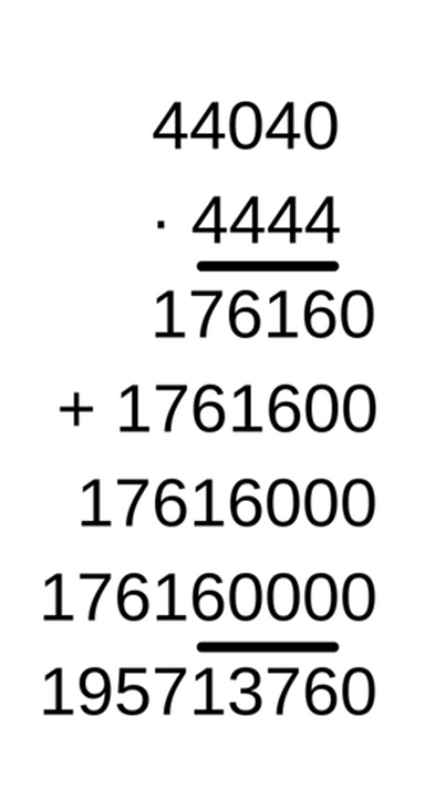 Zapisane słownie w poleceniu mnożenie, należy wykonać po zamianie liczb na zapis przy pomocy cyfr. Wykonując mnożenie pisemne przez liczbę wielocyfrową, należy najpierw pomnożyć cyfrę jedności liczby, przez którą mnożysz, przez cyfrę jedności drugiej liczby. Jeśli otrzymana liczba jest dwucyfrowa, należy cyfrę jedności takiego wyniku zapisać pod słupkiem cyfr jedności, a cyfrę dziesiątek z wyniku trzeba przenieść dalej poprzez dopisanie tej cyfry nad kolejnym w lewo słupkiem, czyli słupkiem cyfr dziesiątek. Przy mnożeniu kolejnego słupka, do wyniku dodaje się przeniesioną cyfrę ze słupka wcześniej. W taki sam sposób należy mnożyć każdą kolejną cyfrę, zaczynając od lewej i idąc do prawej. Jeśli w ostatnim słupku wyjdzie liczba większa od 10, to już nie wolno przenosić dalej, bo nie ma kolejnego słupka, lecz należy napisać całą liczbę. Po pomnożeniu przez cyfrę jedności należy wykonać te same operacje, mnożąc przez kolejne cyfry, zaczynając od dziesiątek. Z każdą kolejną cyfrą, przez którą mnożysz w sekcji dodawania, dopisuj z prawej strony jedno zero. Na końcu wykonaj dodawanie pisemne. Dodawaj kolejno każdy ze słupków, począwszy od jedności, a gdy po dodaniu wynik będzie dwucyfrowy, to liczbę jedności zapisz pod tym słupkiem, a liczba dziesiątek przejdzie dalej do następnego słupka.