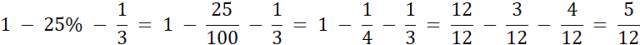25% to ułamek, w którym w liczniku znajduje się liczba procentów, a w mianowniku liczba 100. Od 1 (całości nagrody) odejmujemy wszystkie wkłady w postaci części całej nagrody. Żeby obliczyć wartość nagrody dzielimy sumę wkładów pieniężnych przez część całej nagrody, jaką stanowią. Obliczamy kwotę przekazaną przez każdego z wójtów.