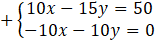 Współczynniki przy zmiennej x są przeciwne, więc dodajemy do siebie obie strony obu równań: