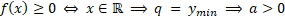Zauważmy, że skoro w całej dziedzinie funkcja f nie przyjmuje wartości ujemnych, to jej ramiona są skierowane w górę, a więc współczynnik a jest dodatni.