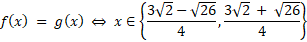 Argumenty, dla których obie funkcje przyjmują jednakowe wartości wyznaczamy poprzez przyrównanie ich