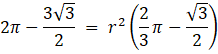 Dane jest pole narysowanej figury. Podaj długość promienia okręgu.