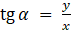x i y to współrzędne punktu wyznaczającego ramię końcowe kąta α, które odczytasz z funkcji tangens (