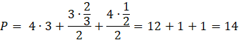 Otrzymana figura to prostokąt o wymiarach 4 x 3 i dwa trójkąty prostokątne o przyprostokątnych długości 3 i