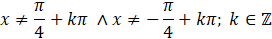 Wyznacz dziedzinę równania wynikającą z tego, że w mianowniku znajduje się wyrażenie z niewiadomą oraz z faktu, że tangens nie jest określony dla: