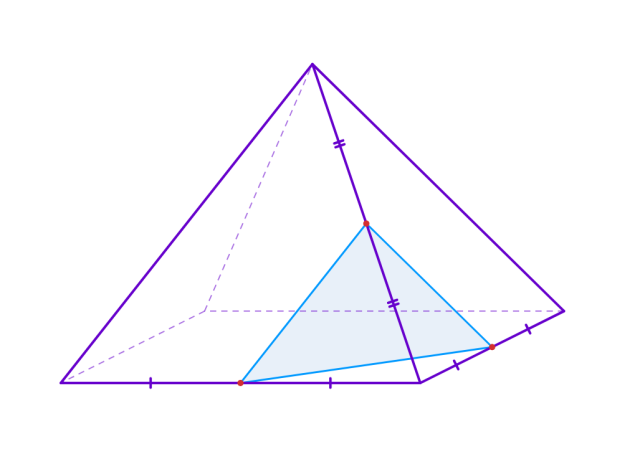 Naszkicuj ostrosłup, zaznacz punkty, przez które musi przechodzić płaszczyzna, a następnie naszkicuj przekrój.