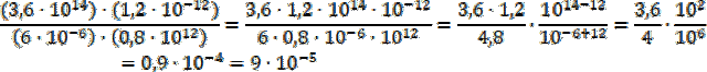 Podziel również liczby zapisane w notacji wykładniczej: podziel pierwszy czynnik z jednej liczy przez pierwszy czynnik drugiej liczby. To samo zrób z drugimi czynnikami liczb – pamiętaj, że dzieląc potęgi o tych samych podstawach, musisz odjąć od siebie wykładniki, a podstawy pozostają bez zmian.