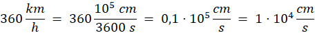 Zamień kilometry na centymetry oraz godziny na sekundy, a następnie uzgodnij wynik, by zapis był zgodny z zasadami notacji wykładniczej.