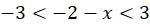 Ponieważ wartość bezwzględna z -2 – x ma być mniejsza od 3, to znaczy, że liczba ta znajduje się między -3 a 3. Rozwiąż podaną podwójną nierówność.