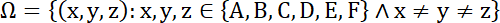Zapisz przestrzeń zdarzeń elementarnych dla następujących doświadczeń losowych losowanie kolejno bez zwracania trzech liter ze zbioru {A, B, C, D, E, F}.